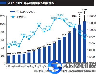 據(jù)國(guó)家統(tǒng)計(jì)局公布的數(shù)據(jù)顯示,2016年全國(guó)農(nóng)村居民人均純收入12363元,增幅8.2%,扣除價(jià)格因素實(shí)際增長(zhǎng)6.2%。這兩個(gè)數(shù)據(jù),都較往年明顯放緩,也是近13年來(lái)最低。