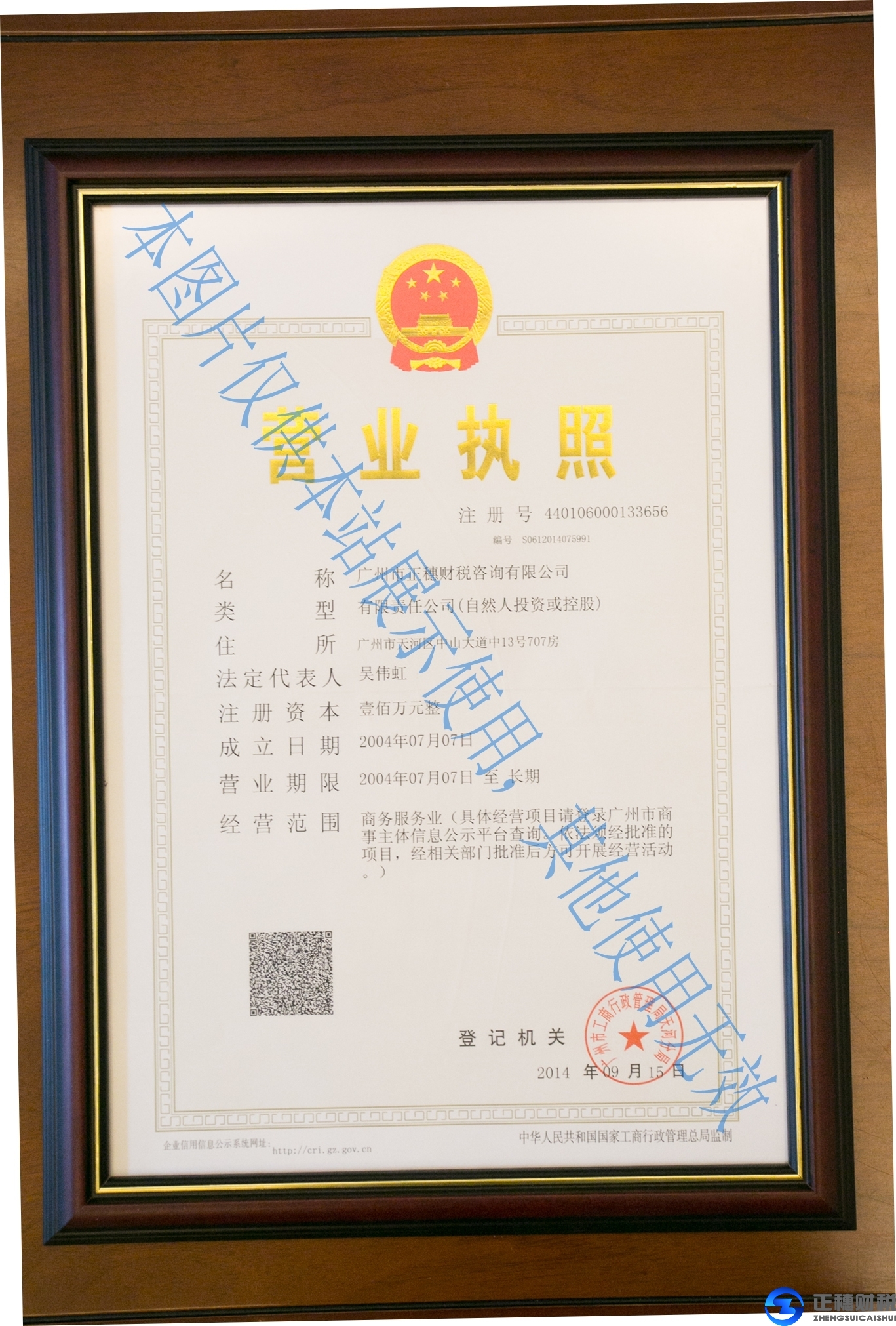 正穗外資注冊網(wǎng)是 廣州市正穗財稅咨詢有限公司旗下網(wǎng)站(注 冊號:4401042017139)系2004年經(jīng)廣州市工商行政管理局核準(zhǔn)成立,具有財政局核發(fā)的《代理記賬許可證書》(代理記賬許可證 號:05068),2013年度獲得廣東省工商行政管理局頒發(fā)的廣東省守信用重合同信用企業(yè),是廣州市市場中介服務(wù)行業(yè)協(xié)會會員單位(穗市協(xié)第036 號),是廣州市天河區(qū)珠吉街道商會理事單位。