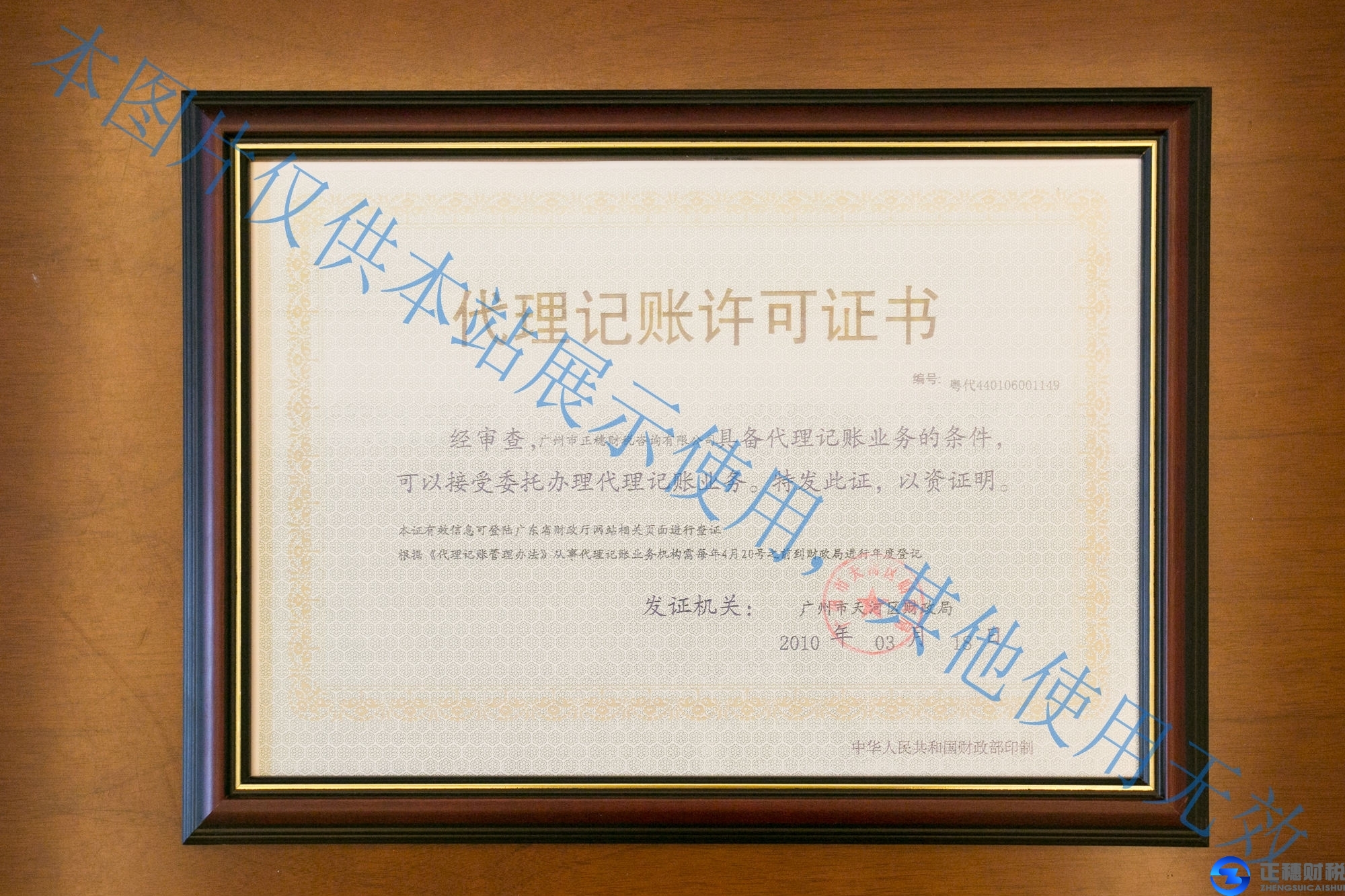 廣州財政局代理頒發(fā)記賬許可證正穗外資注冊網(wǎng)是廣州市正穗財稅咨詢有限公...